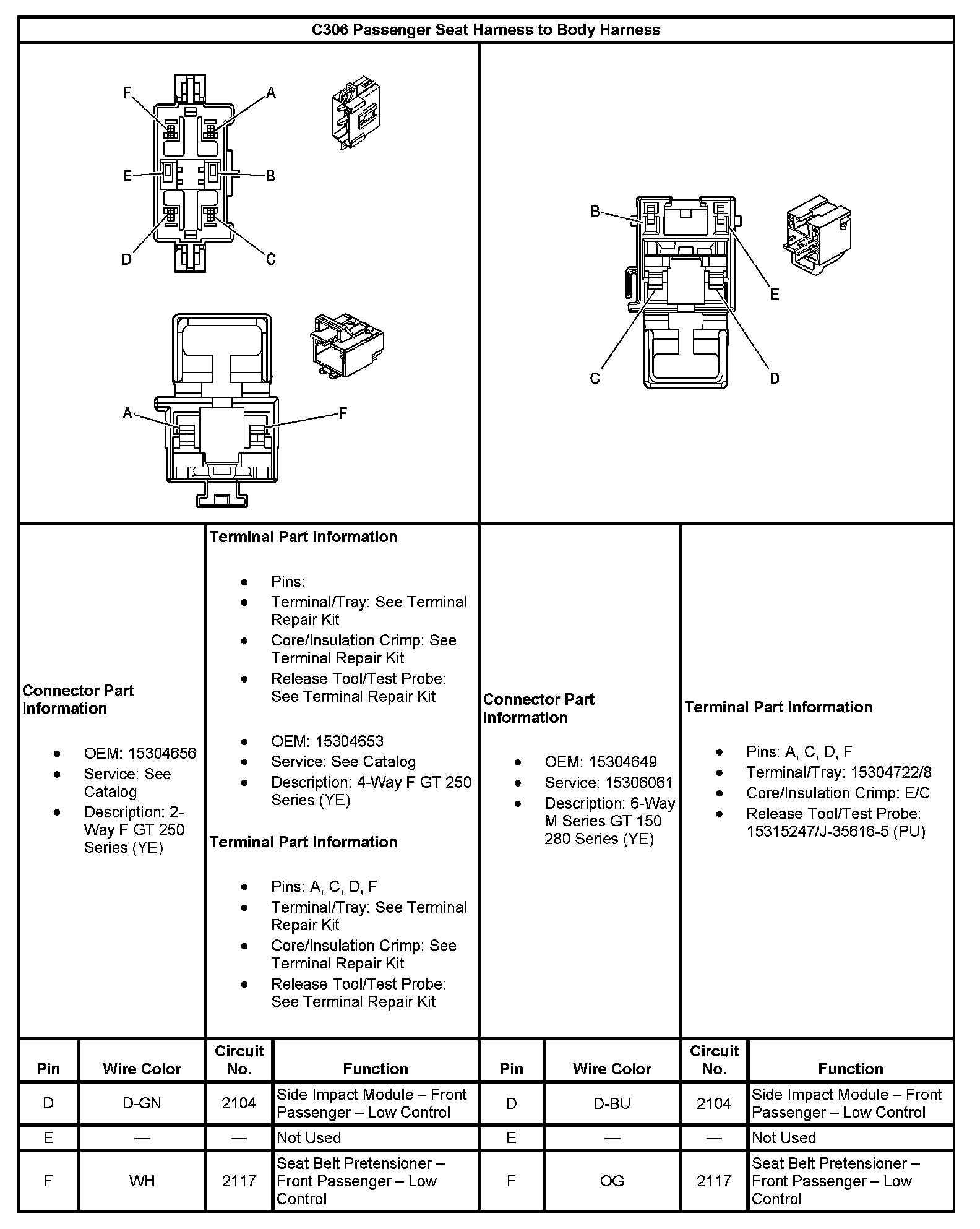 C306 Passenger Seat Harness To Body Harness (Part 1):