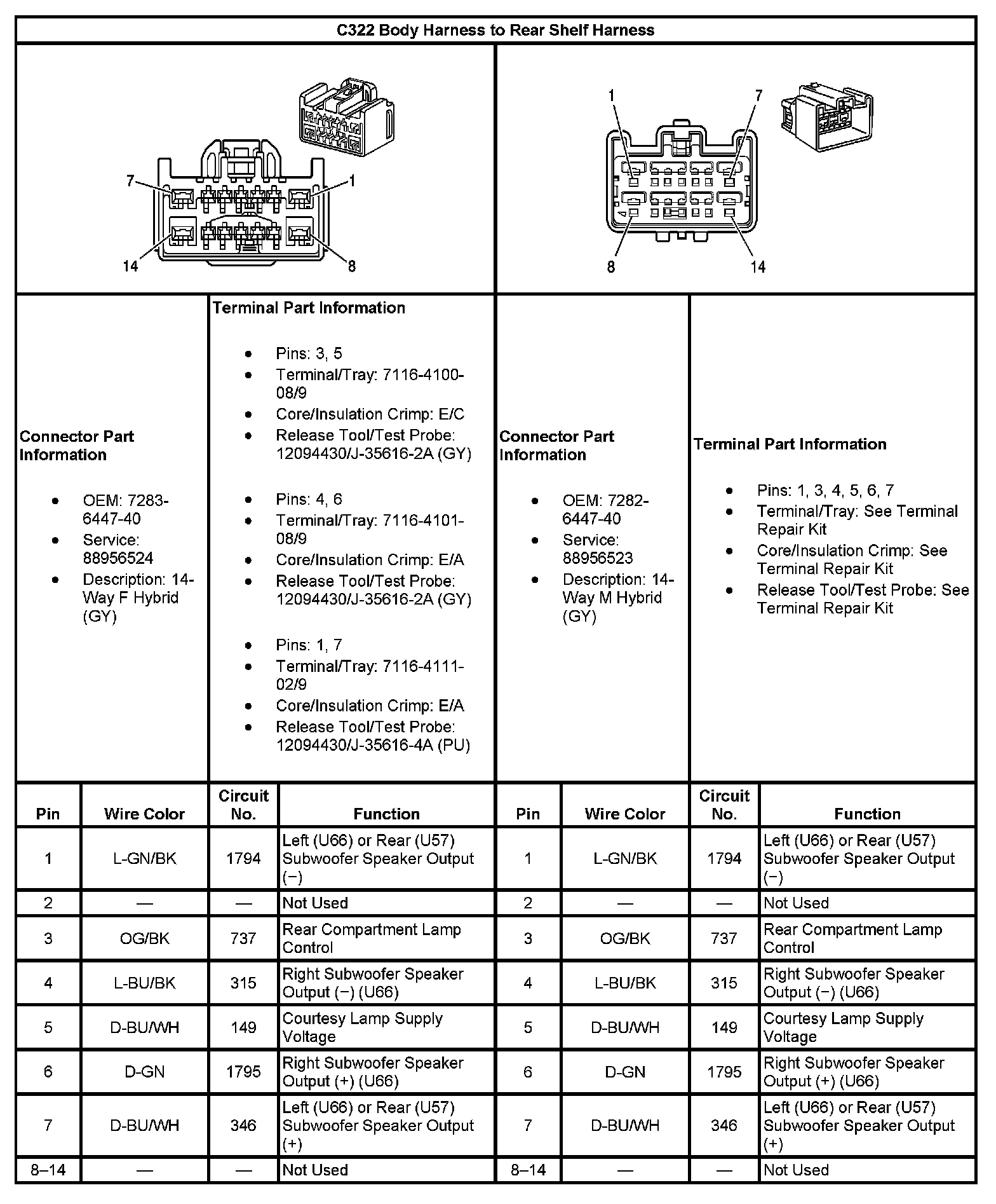 C322 Body Harness To Rear Shelf Harness: