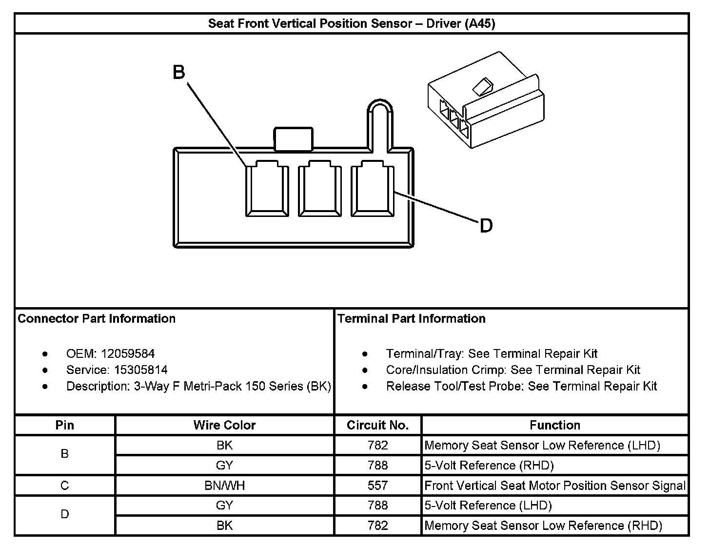Seat Front Vertical Position Sensor - Driver (With RPO Code A45):