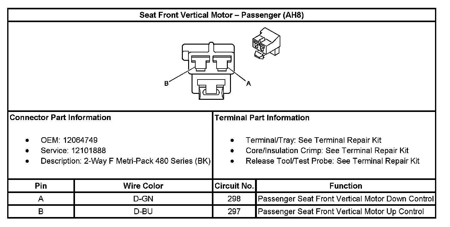Seat Front Vertical Motor - Passenger (With RPO Code AH8):