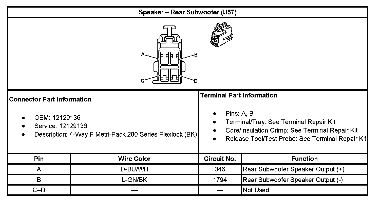 Speaker - Rear Subwoofer (With RPO Code U57):