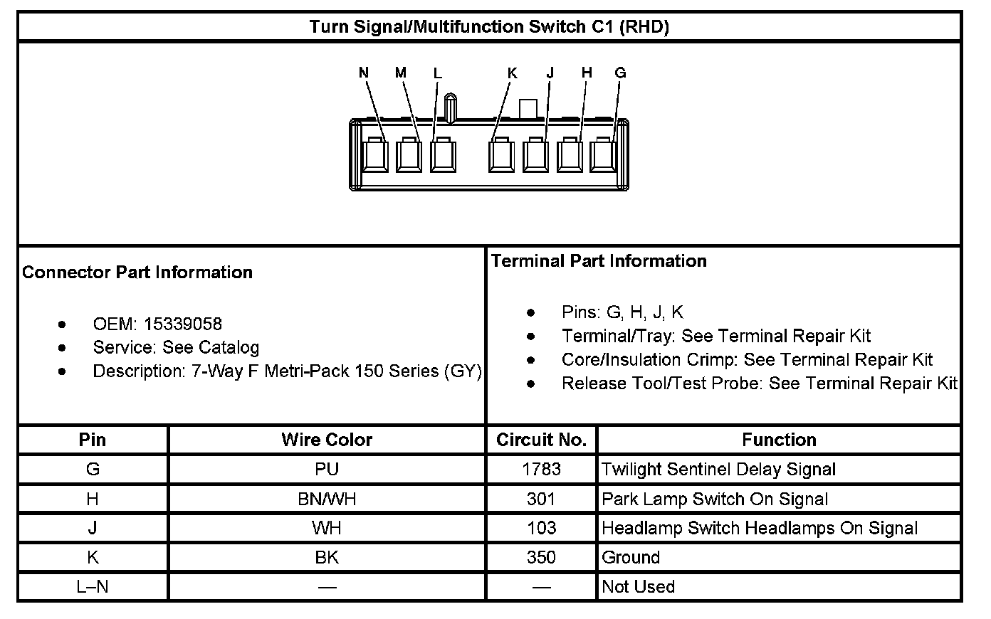 Turn Signal/Multifunction Switch C1 (RHD):