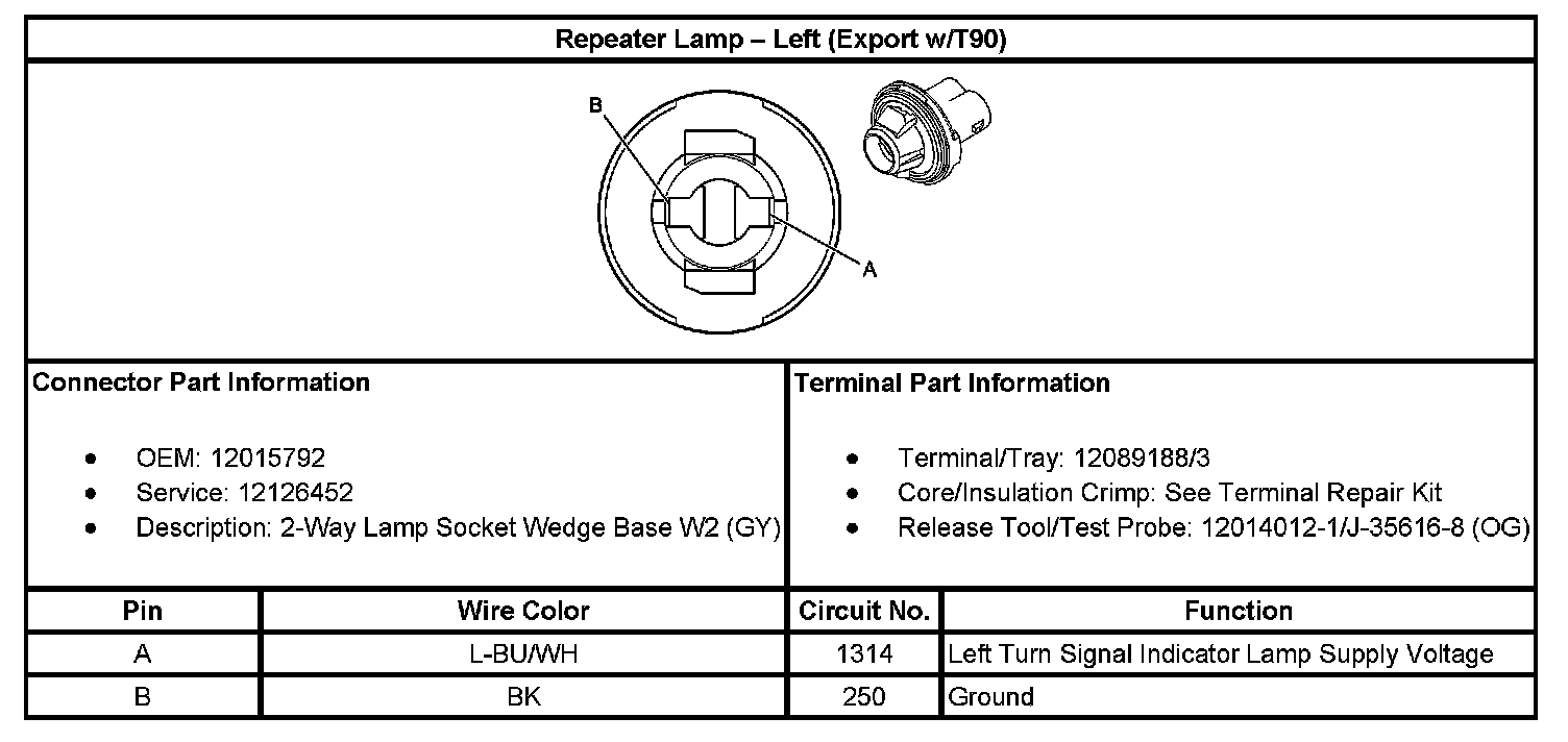 Repeater Lamp - Left (Export With RPO Code T90):
