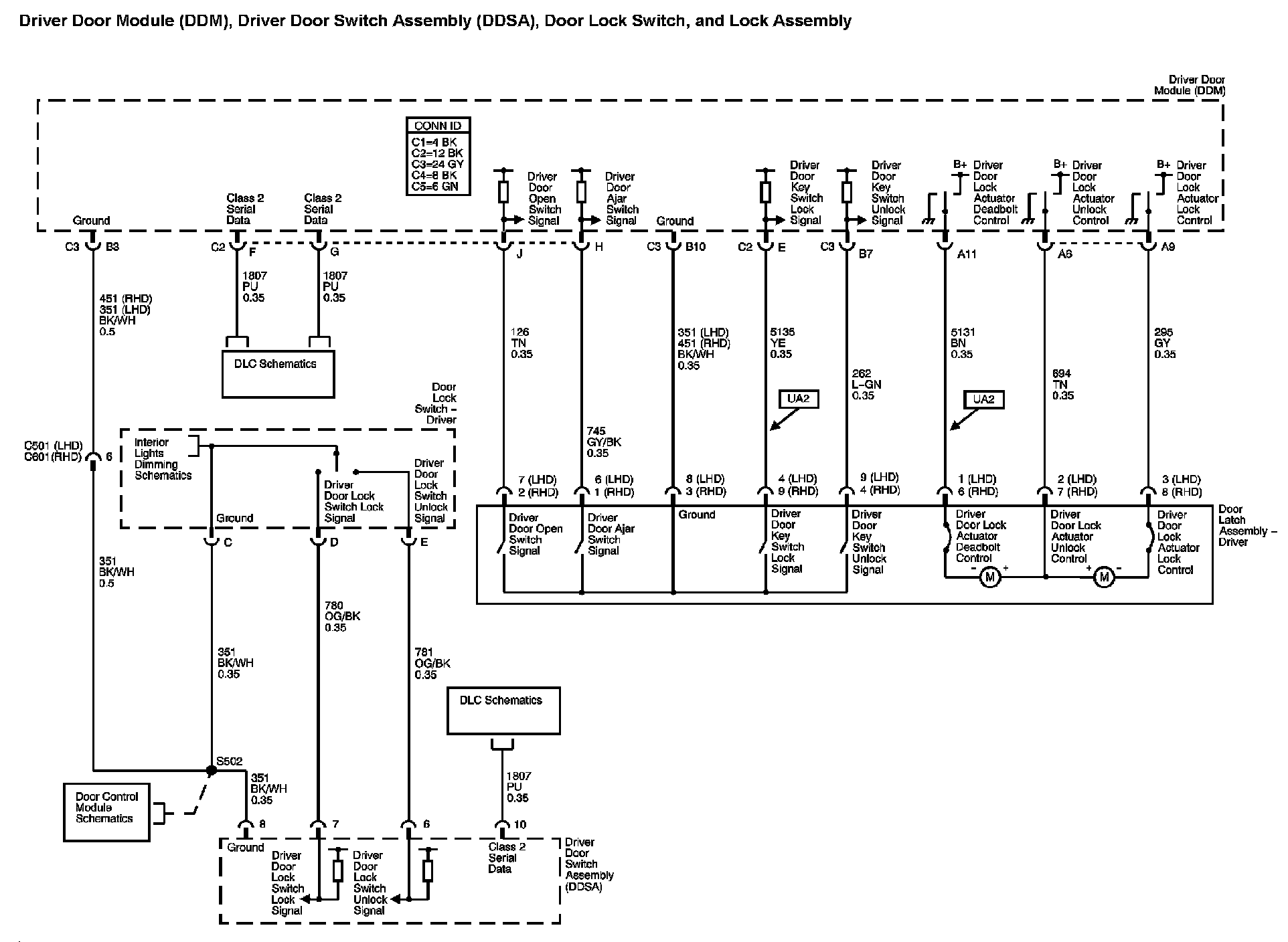 Locations: The locations for the Connectors, Grounds, Splices, and Grommets shown within these diagrams can be found via their numbers at Vehicle Locations. Locations
