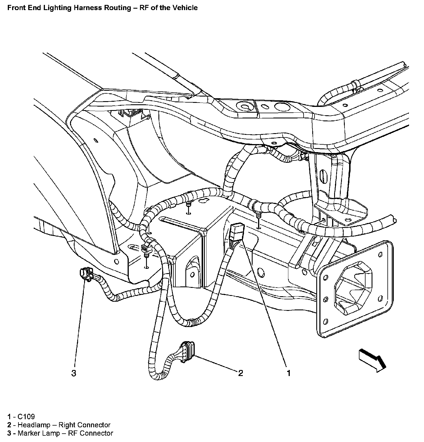 Front End Lighting Harness Routing - RF Of The Vehicle: