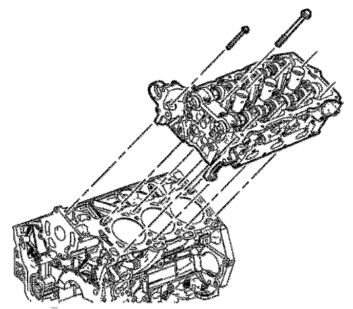 1. Ensure the cylinder head locating pins are securely mounted in the cylinder block deck face.