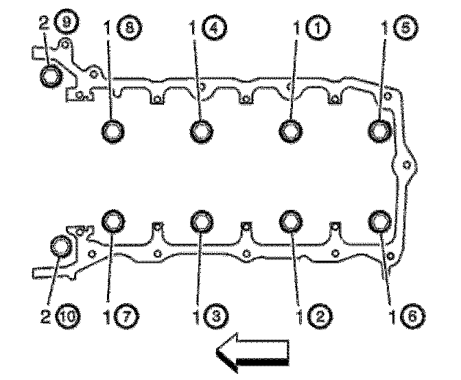 - Tighten the M8 cylinder head bolts a second pass in sequence an additional 75 degrees using the J 45059.