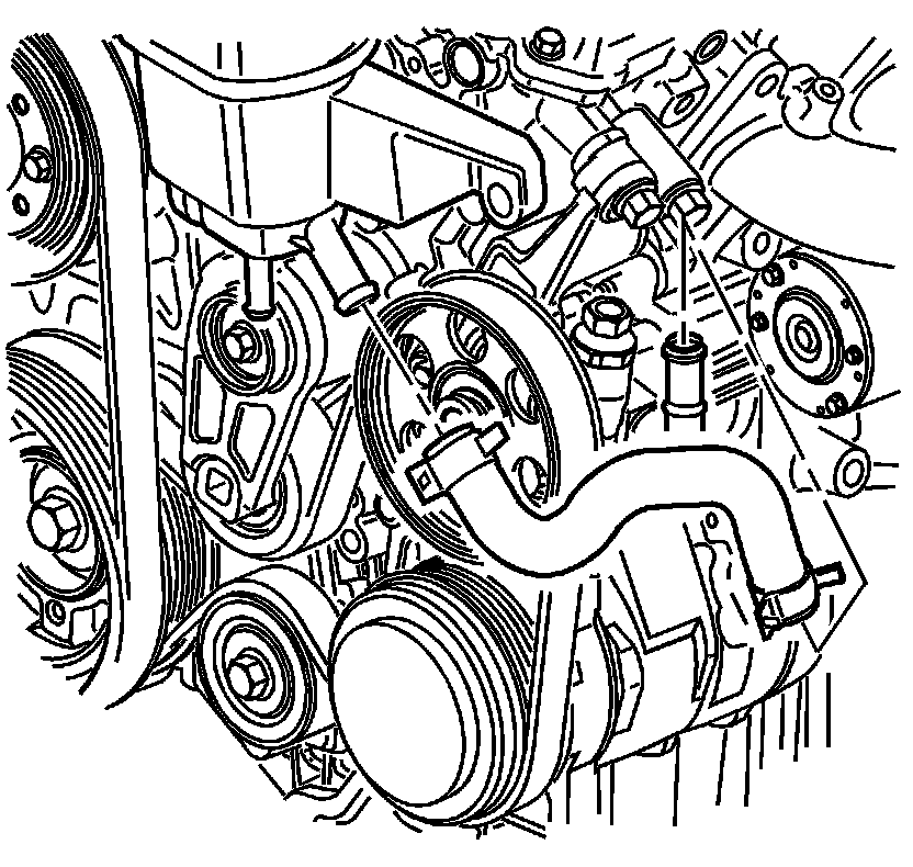 1. Compress and reposition the clamp on the power steering reservoir hose in order to remove the hose from the power steering pump.