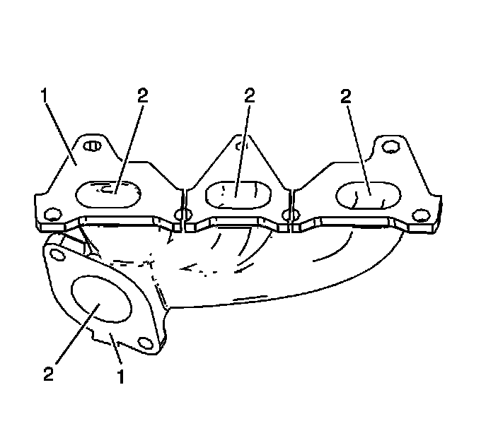 * Damage or excessive corrosion to the exhaust manifold exterior (1)