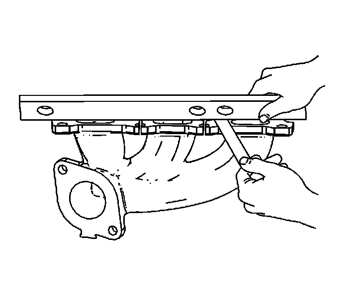 4. Measure the alignment or surface flatness of the exhaust manifold flanges, using a straight edge and a feeler gage. Exhaust manifold surface flatness must not exceed 0.254 mm (0.010 in).