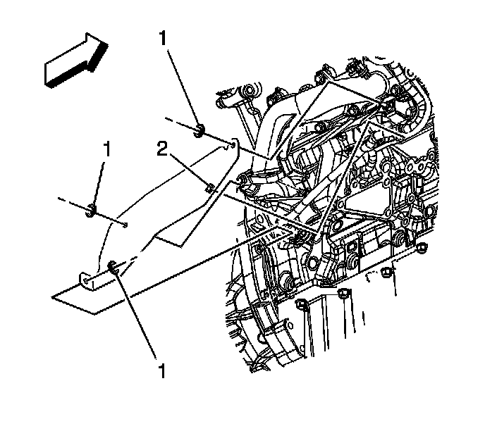 6. Remove the lower exhaust manifold heat shield (2), if necessary.