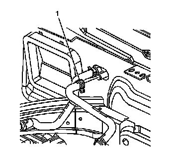 4. Using the J 38185 disconnect the heater inlet hose (1).