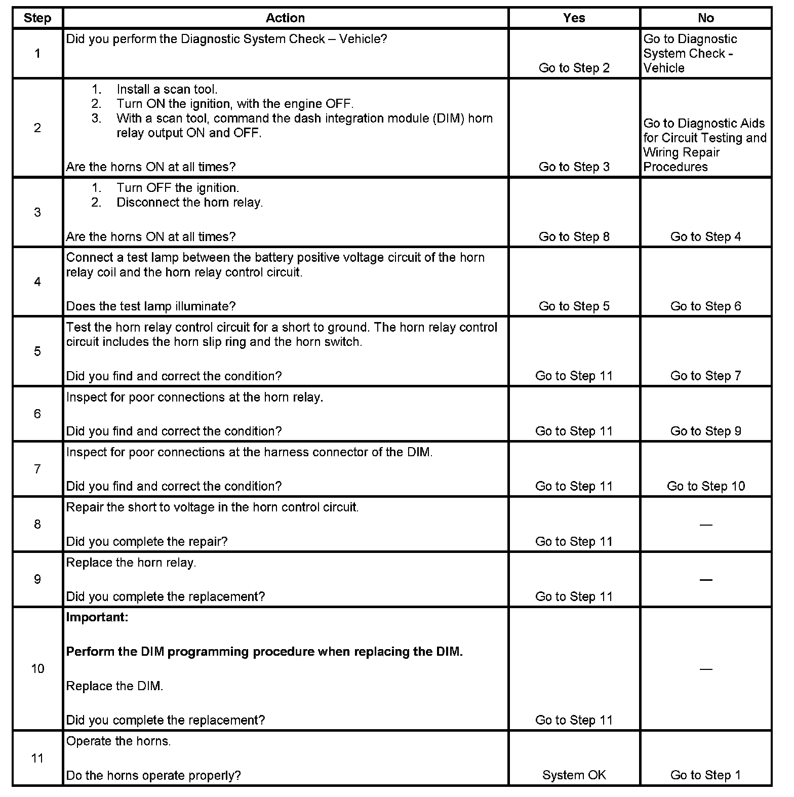 5. The horn relay control circuit includes the horn slip ring and the horn switch. The horn slip ring and horn switch must be tested for a short to ground when testing the relay control circuit.