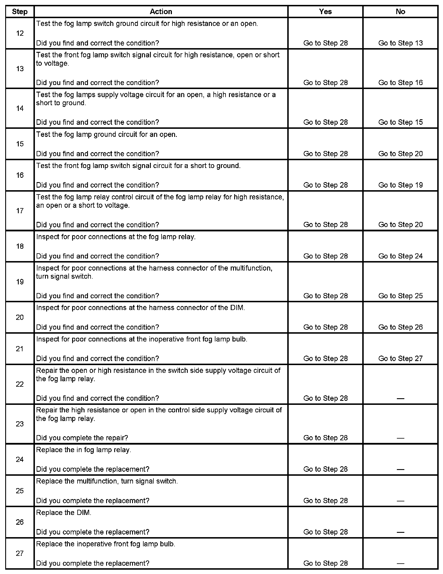 Fog Lamps Inoperative