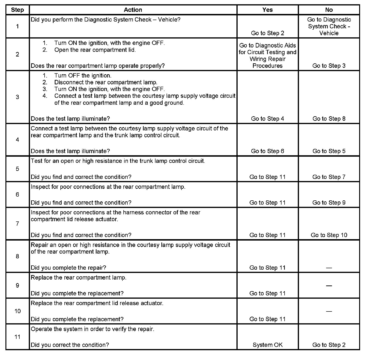 Rear Compartment Lamp(S) Inoperative