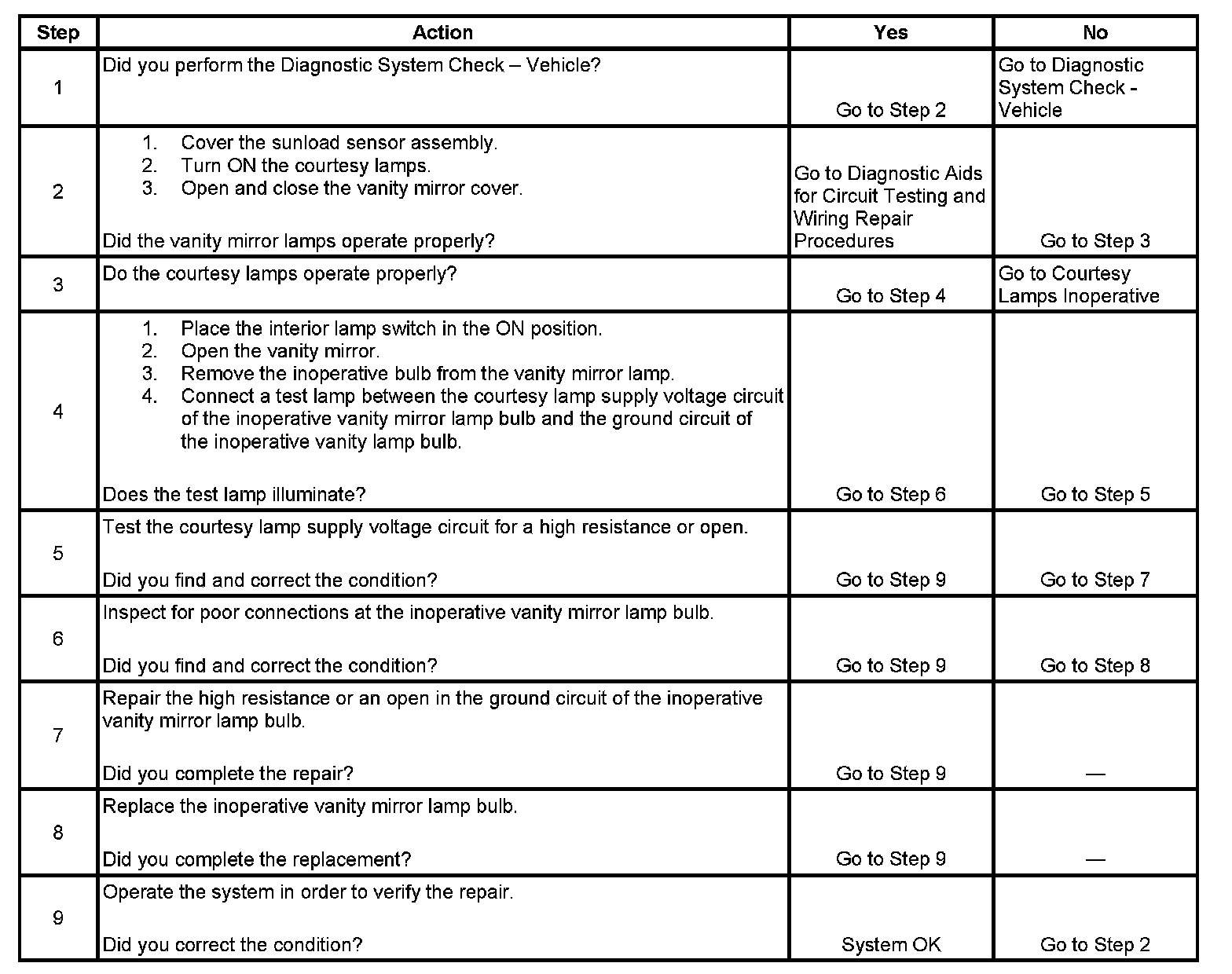 Vanity Mirror Lamp(s) Inoperative