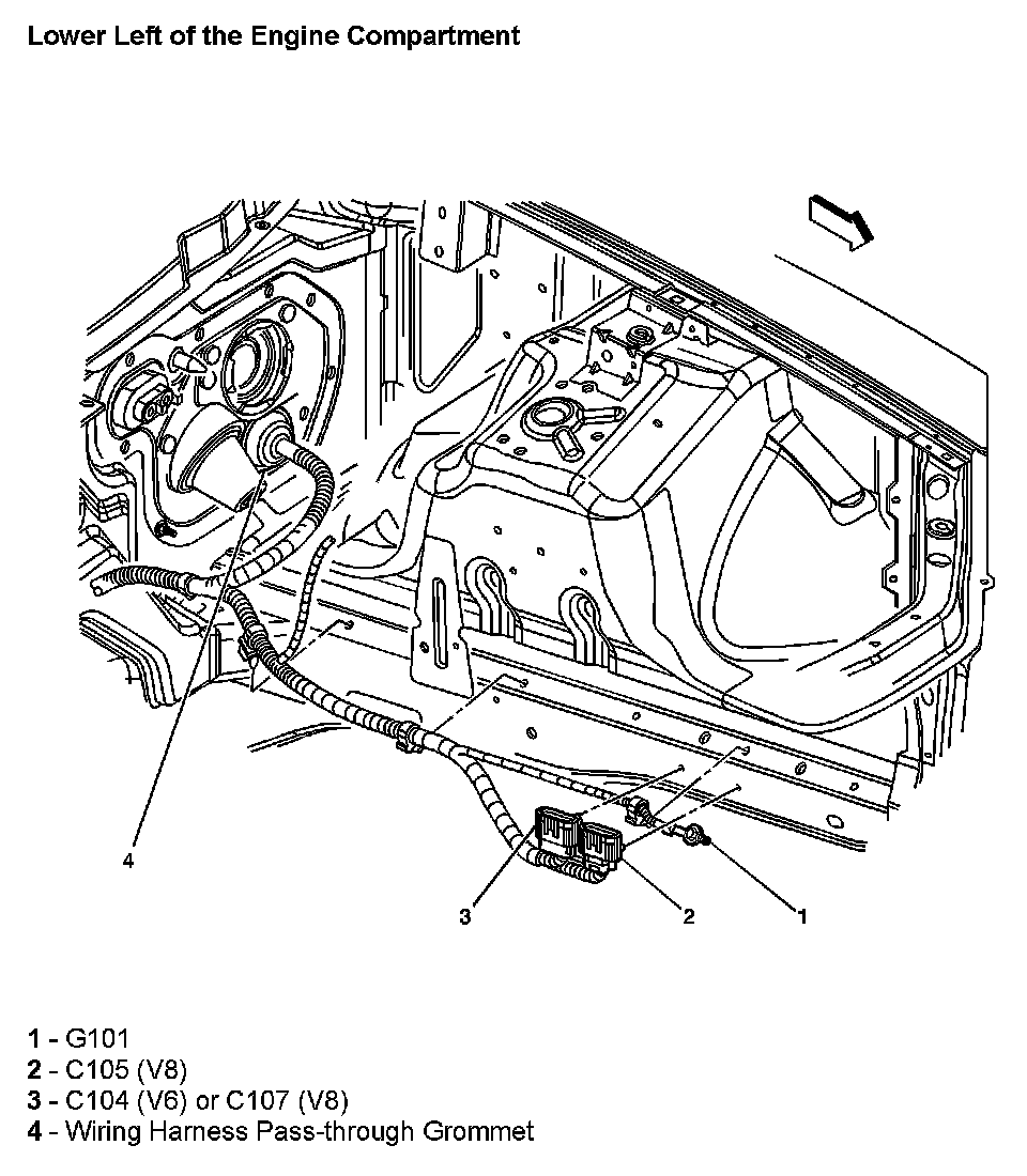 Lower Left Of The Engine Compartment:
