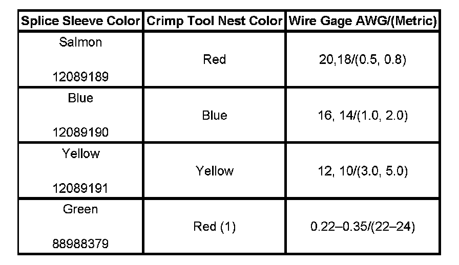 5. Select the proper duraseal splice sleeve (2) and the required crimp nest tool. Refer to the Crimp and Seal Splice Table.