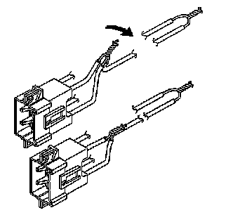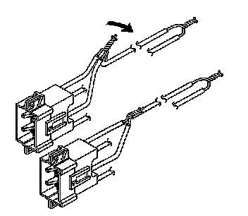 12. Twist together 2 connector wire leads (the high circuits from both stages of the steering wheel module) to one sets of deployment wires. Refer to SIR Connector End Views in order to determine the correct circuits.