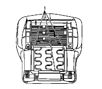 4. Release the seat cushion cover J channels (1) from the seat cushion frame.