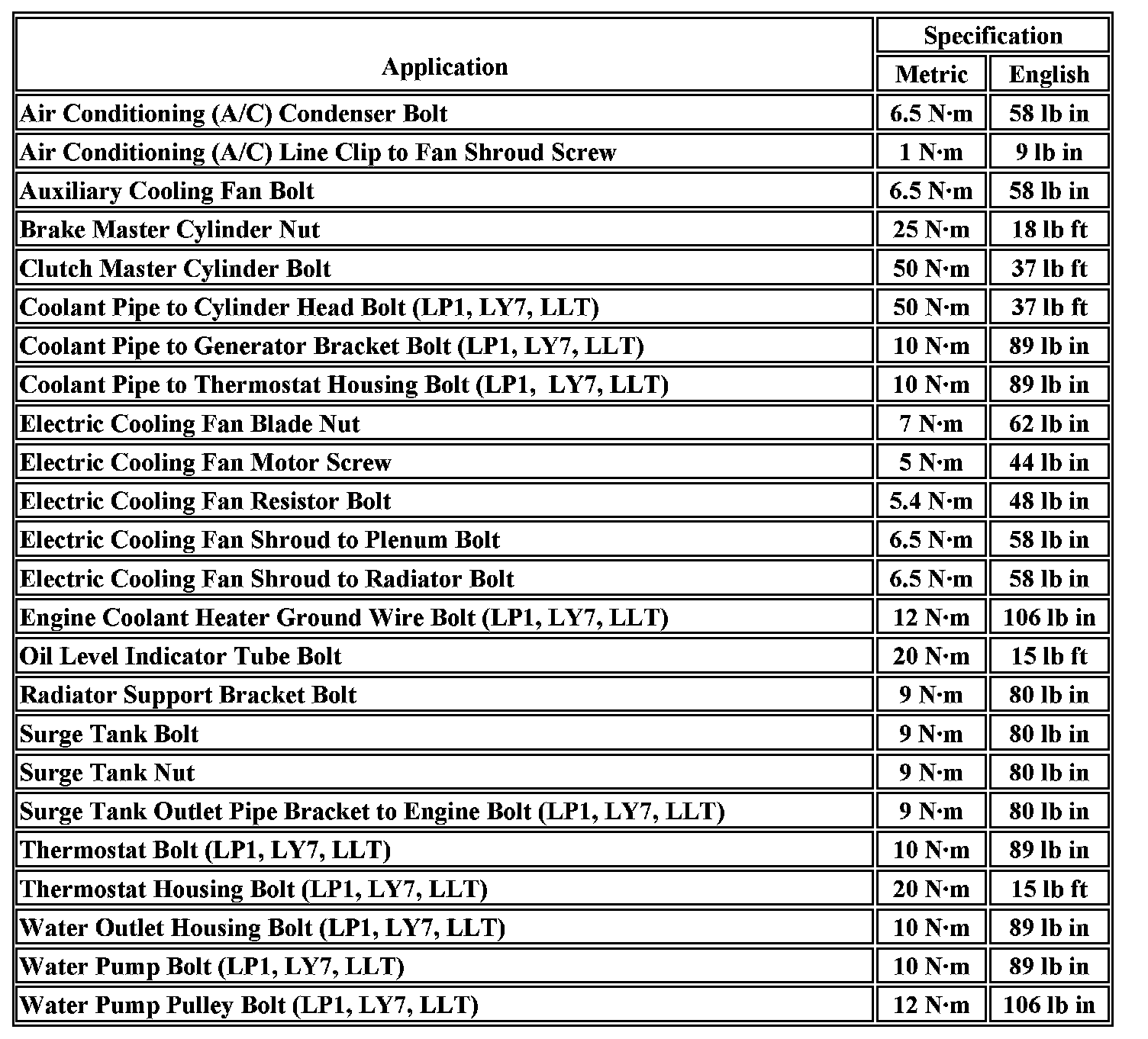 Fastener Tightening Specifications