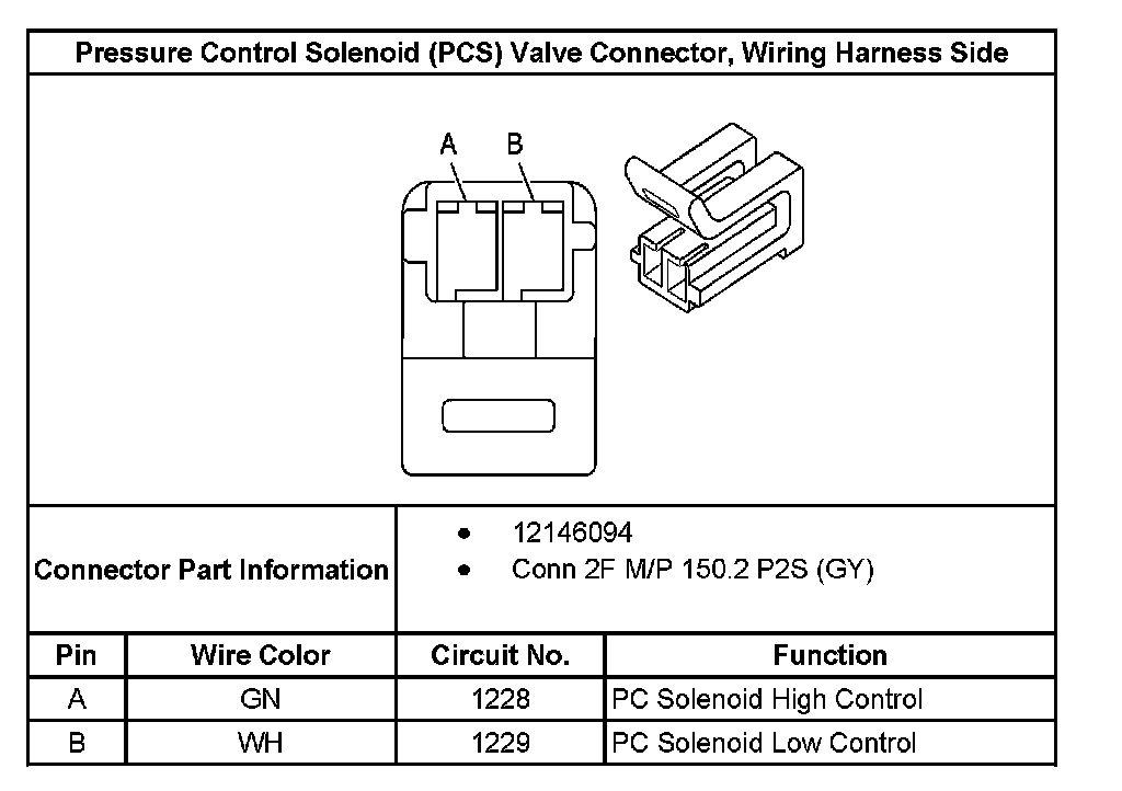 Pressure Control Solenoid (SS) Valve Connector, Wiring Harness Side: