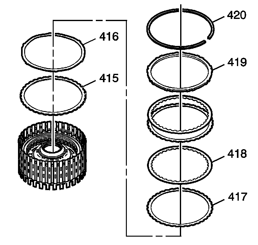3. Remove the clutch plates (418, 417). Refer to Clutch Plate Selection Specifications.