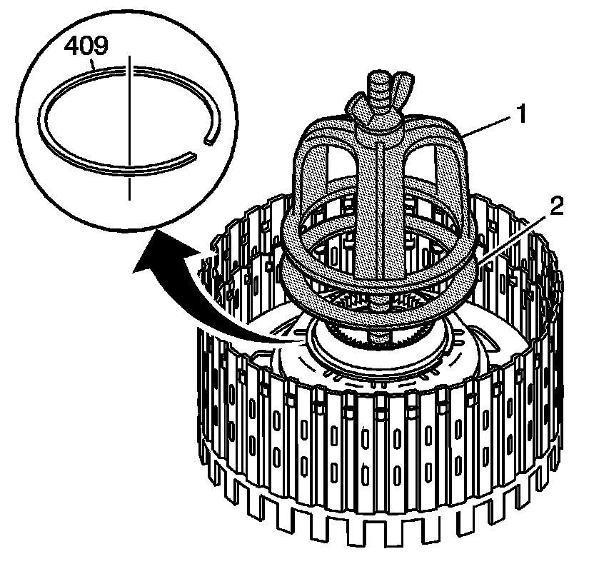 11. Remove the direct and reverse clutch spring retainer ring (409).