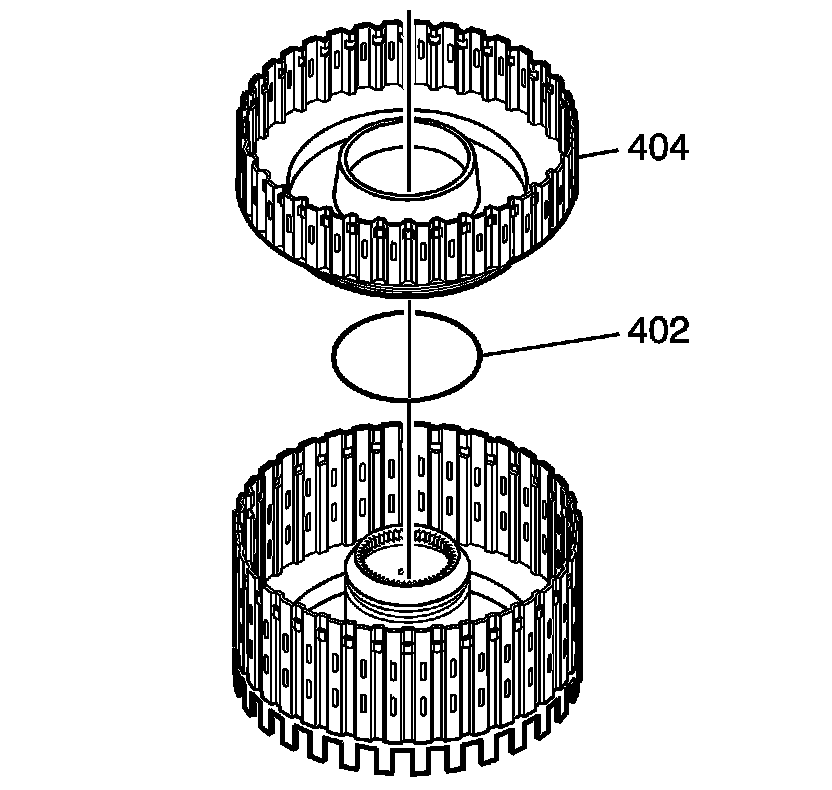 16. Remove the reverse clutch piston (404).