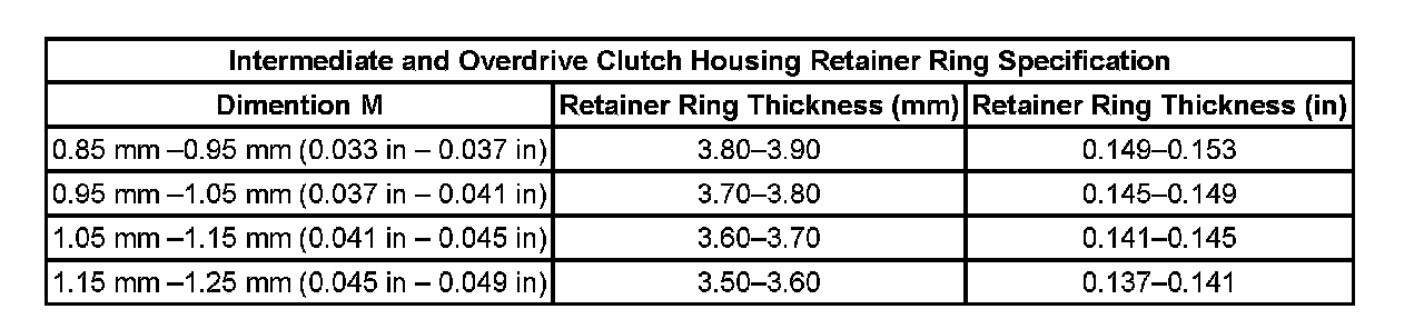 Intermediate and Overdrive Clutch Housing Retainer Ring Specification: