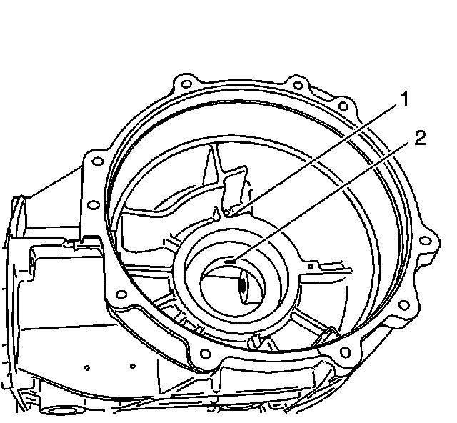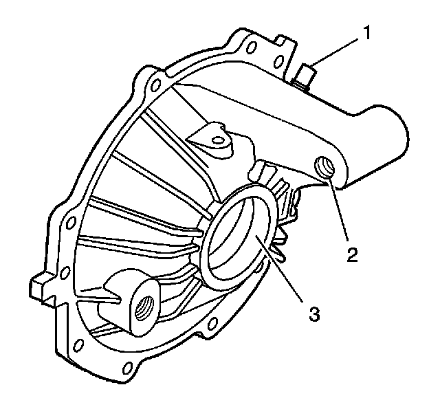3. Clean the oil passage between (1) and (2), in the axle bearing bore.