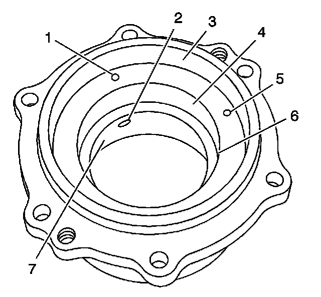 ^ Inspect the pinion seal area (3) and the bearing races (4, 7) for damage