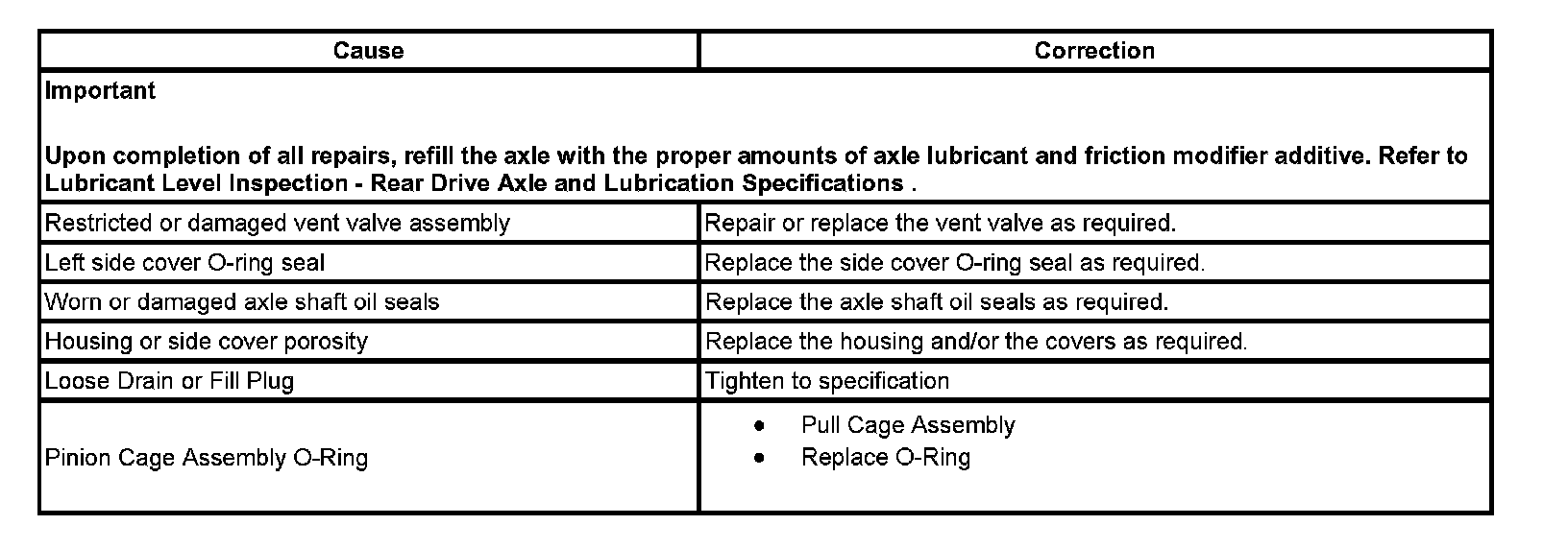 Rear Axle Lubricant Leak Diagnosis