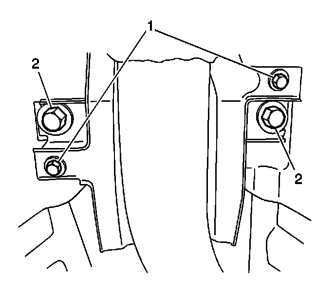 14. Install the center support bearing bolts (2) to the vehicle's underbody.