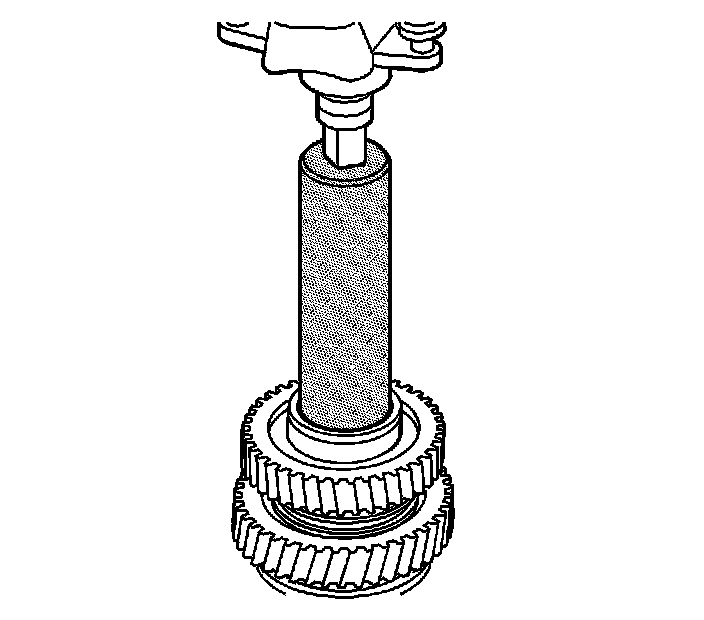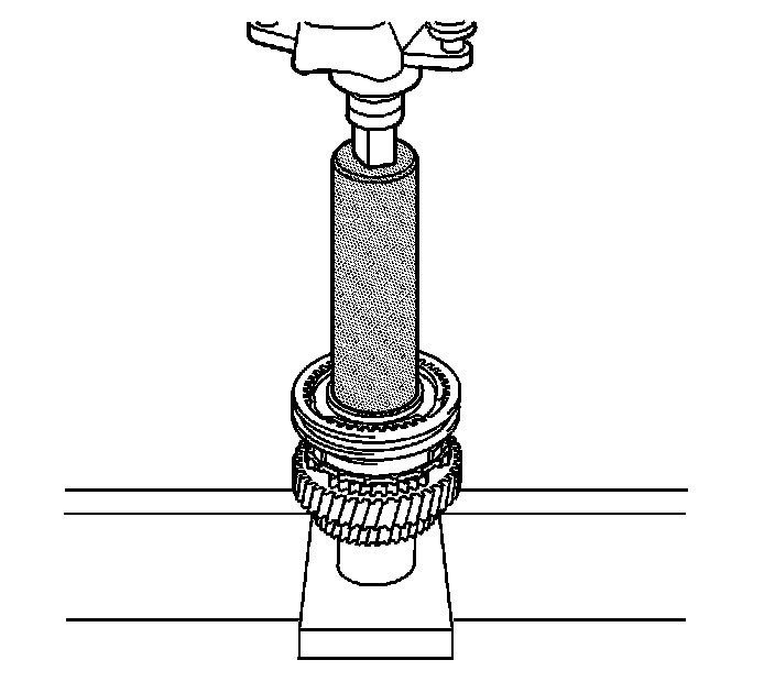 2. Using a hydraulic press and DT-47722, install the 1st/2nd gear synchronizer sleeve with the boss side facing 2nd gear. The synchronizer ring set and transmission clutch hub are to be aligned when installing the transmission clutch hub assembly.