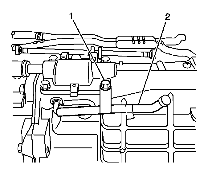 6. Remove the bolt (1) securing the vent hose to the transmission.