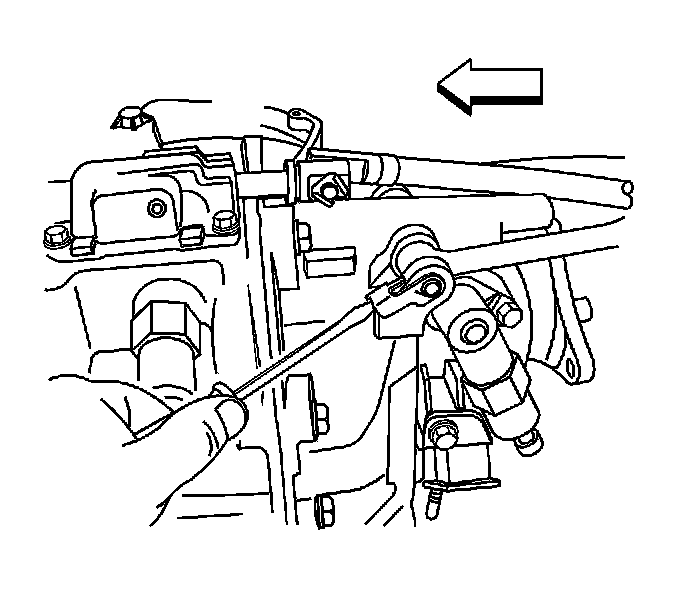 10. Using a flat-blade tool, release the right side shift control rod pin retainer.