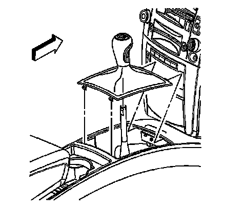 1. Lift up on the rear portion of the shift control closeout boot retaining ring and detach the retaining ring from the console.