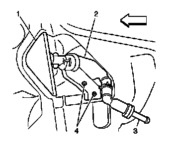 2. Install the 2 screws (4) that retain the headlamp washer nozzle (2) to the headlamp housing.