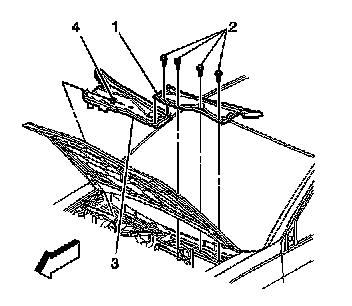 3. Align the wiper module locator hole (7) to the pin located inside rail of the driver side fender.