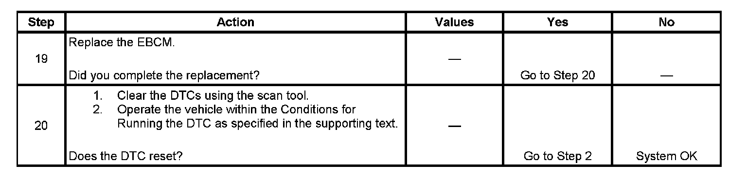 ^ The condition for the DTC is no longer present and the DTC is cleared with a scan tool.