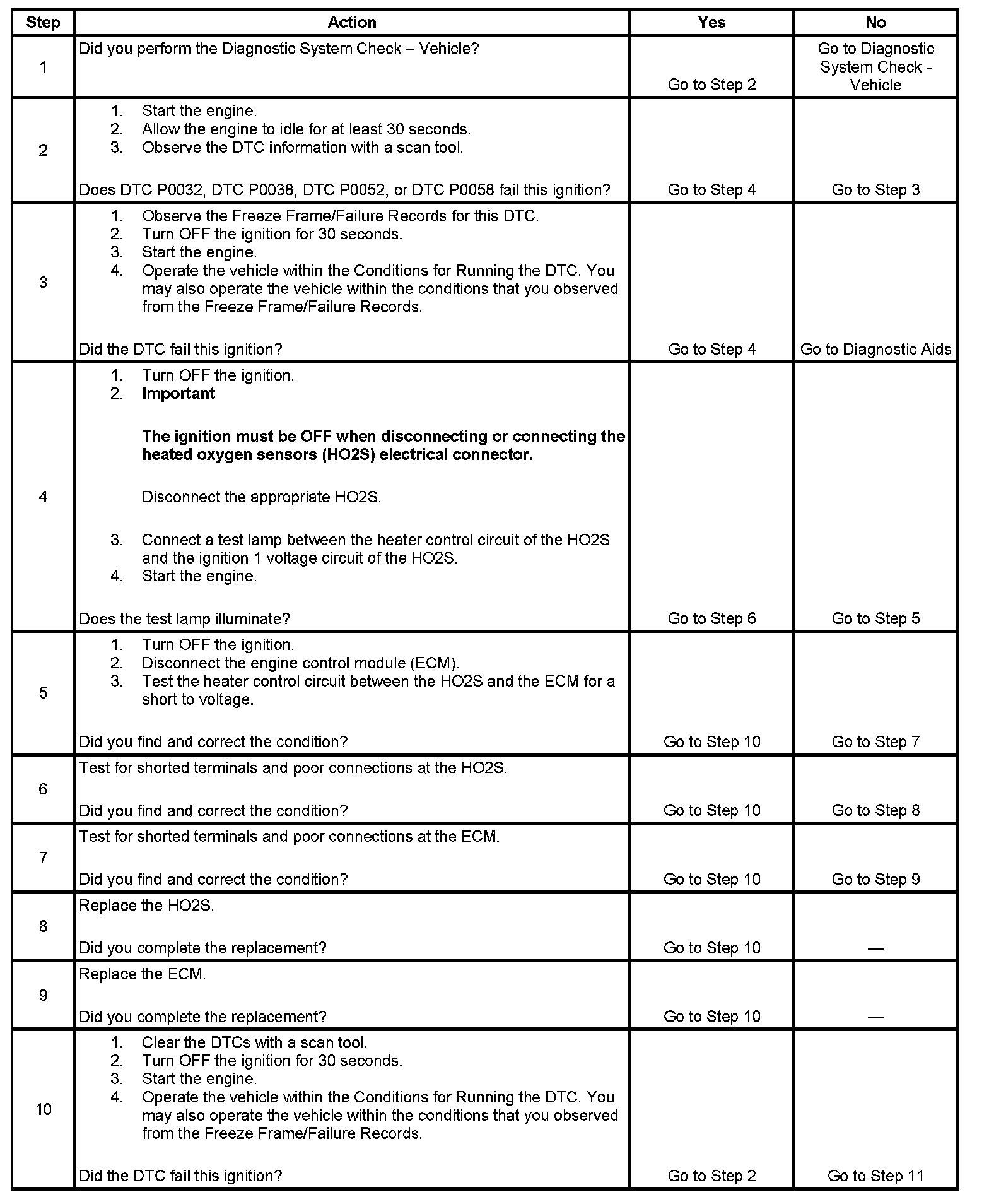 - The ECM detects a short to voltage in the heater circuits of the HO2S when the heater is commanded ON.