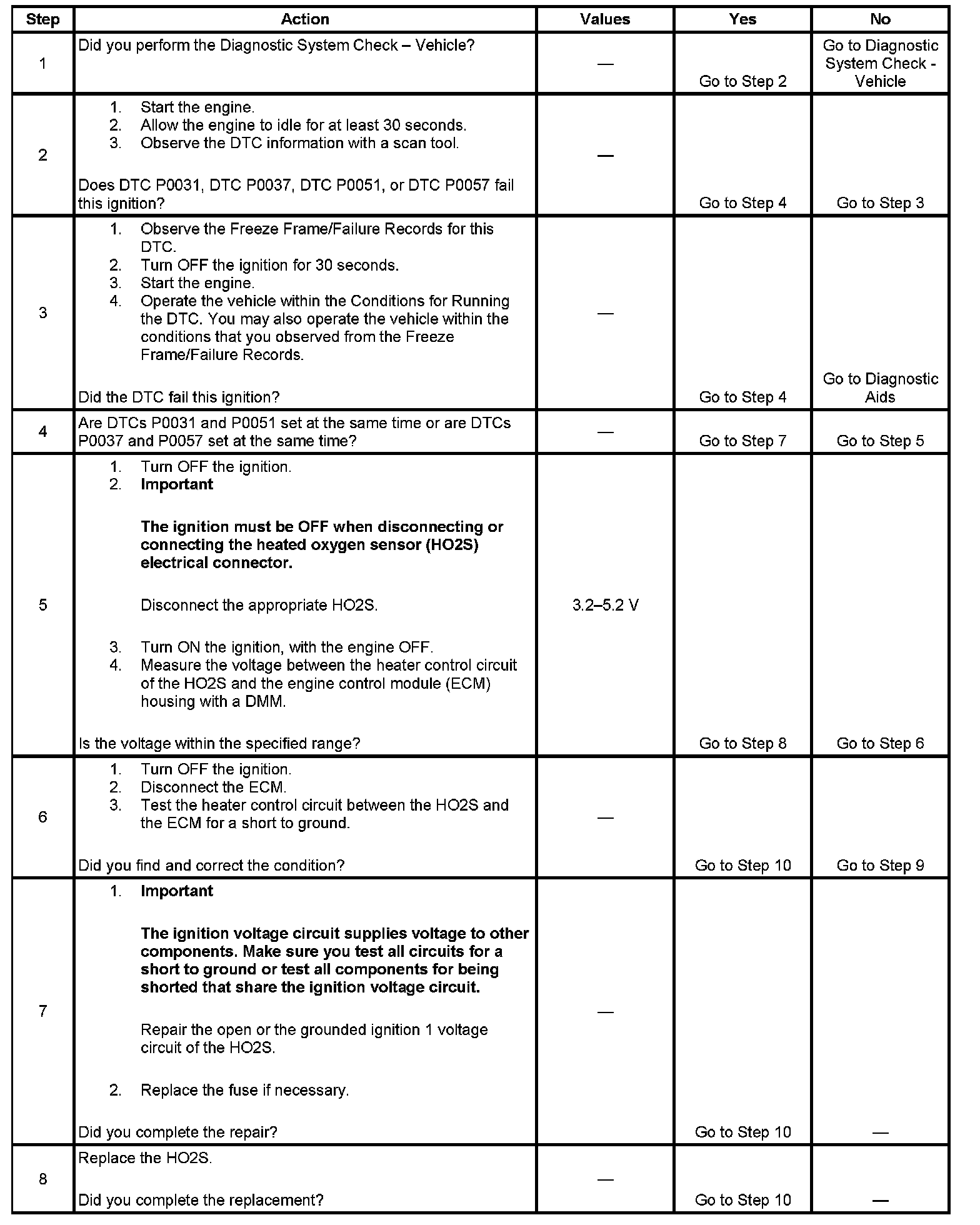 - DTCs P0031, P0037, P0051, and P0057 run continuously once the above conditions are met for less than 1 second.