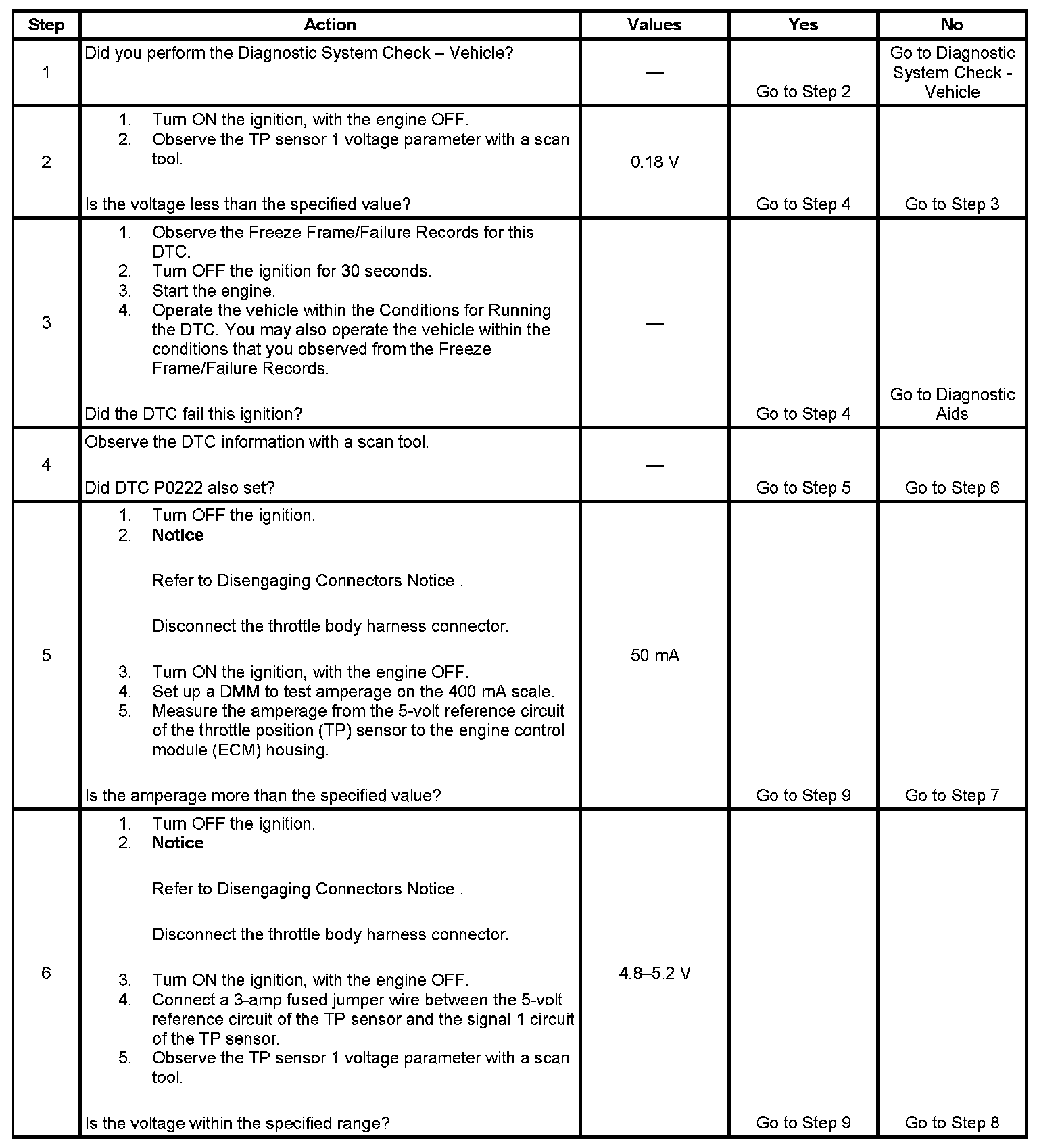 4. The TP sensors share a 5-volt reference circuit. If both DTCs P0122 and P0222 set, test for a condition in the 5-volt reference circuit.