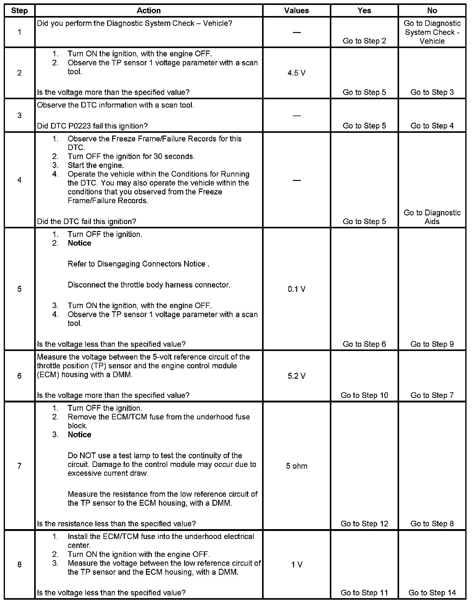 DTC P0123 Throttle Position (TP) Sensor 1 Circuit High Voltage