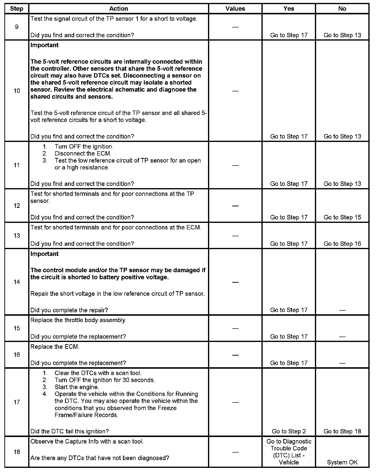 5. This step tests the signal circuit for a short to voltage. If the scan tool displays a voltage after the TP sensor is disconnected, the circuit is shorted to a voltage.