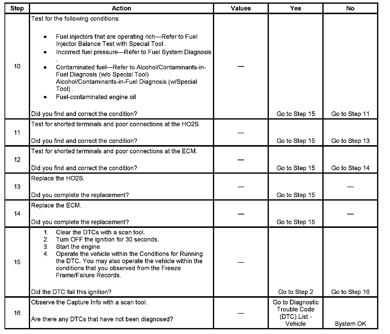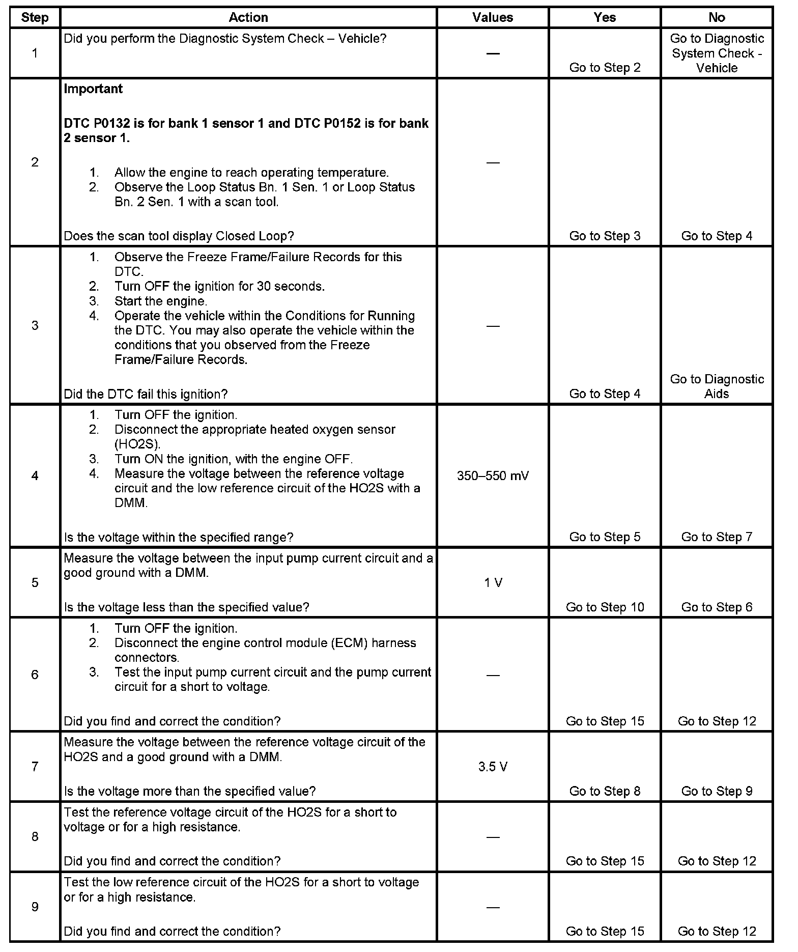 2. This step determines if the condition exists. If there is a short to voltage condition with the HO2S circuits, the ECM commands Open Loop for the applicable sensor.