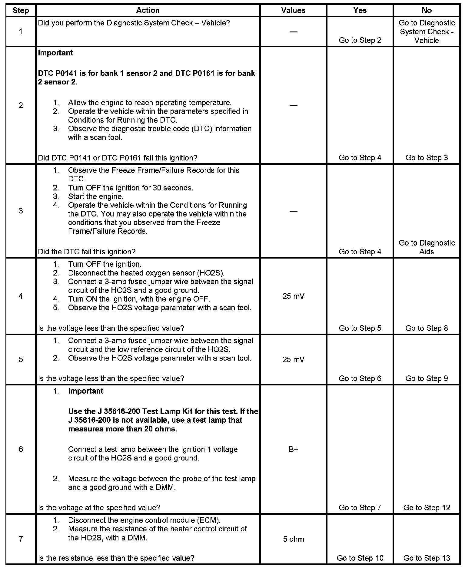 - Before the ECM can report DTC P0141 or P0161 failed, DTCs P0036, P0037, P0038, P0056, P0057, and P0058 must run and pass.