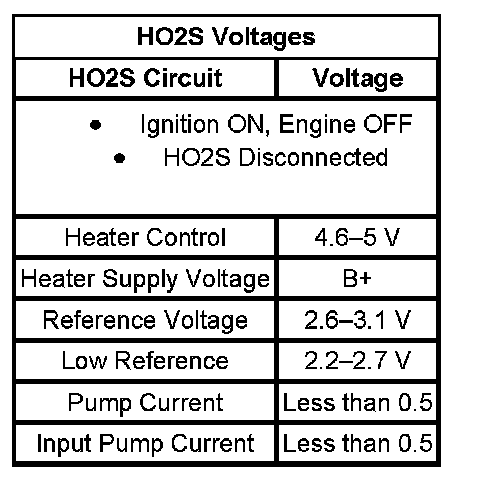 - The table illustrates the typical voltages for the HO2S circuits: