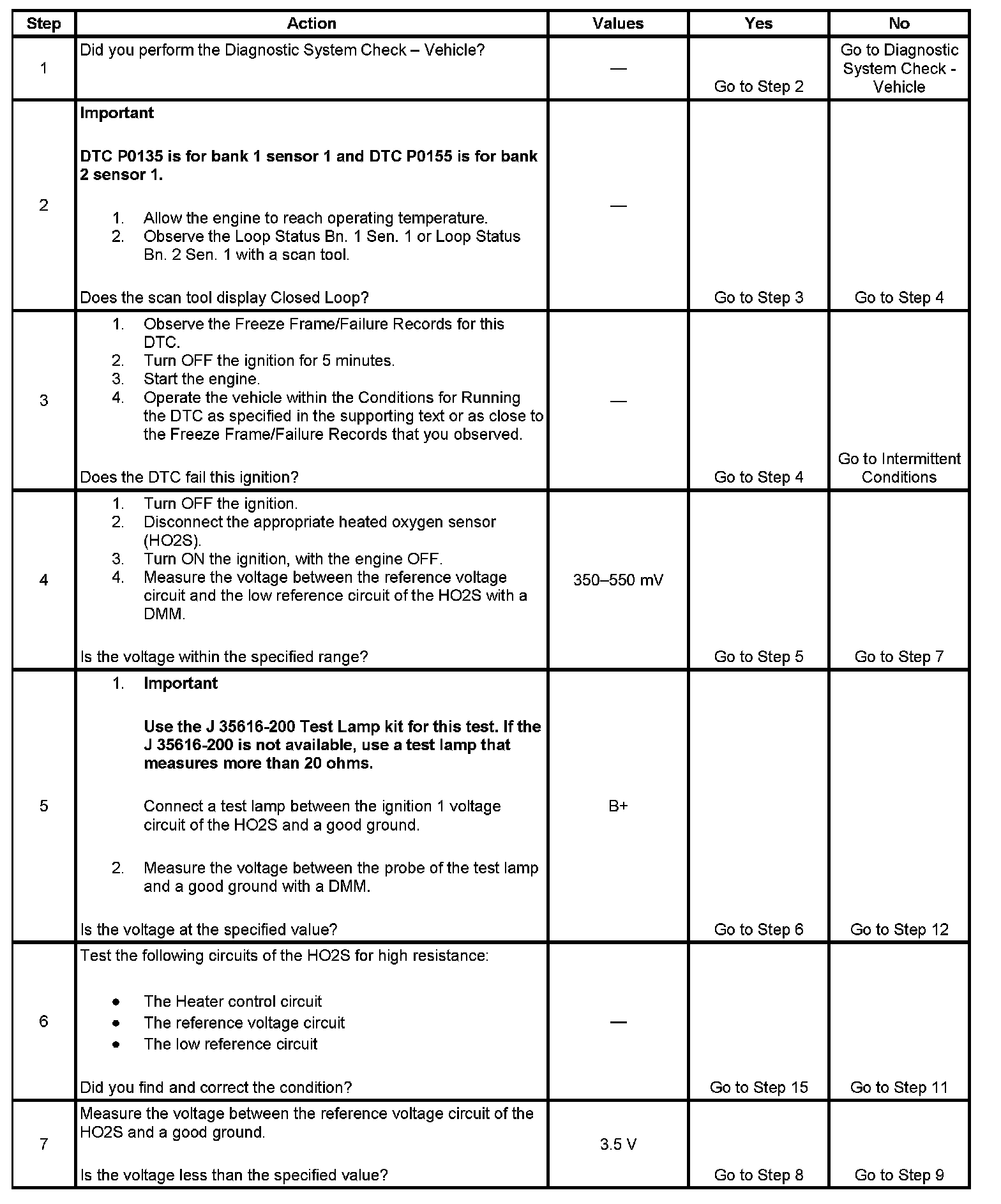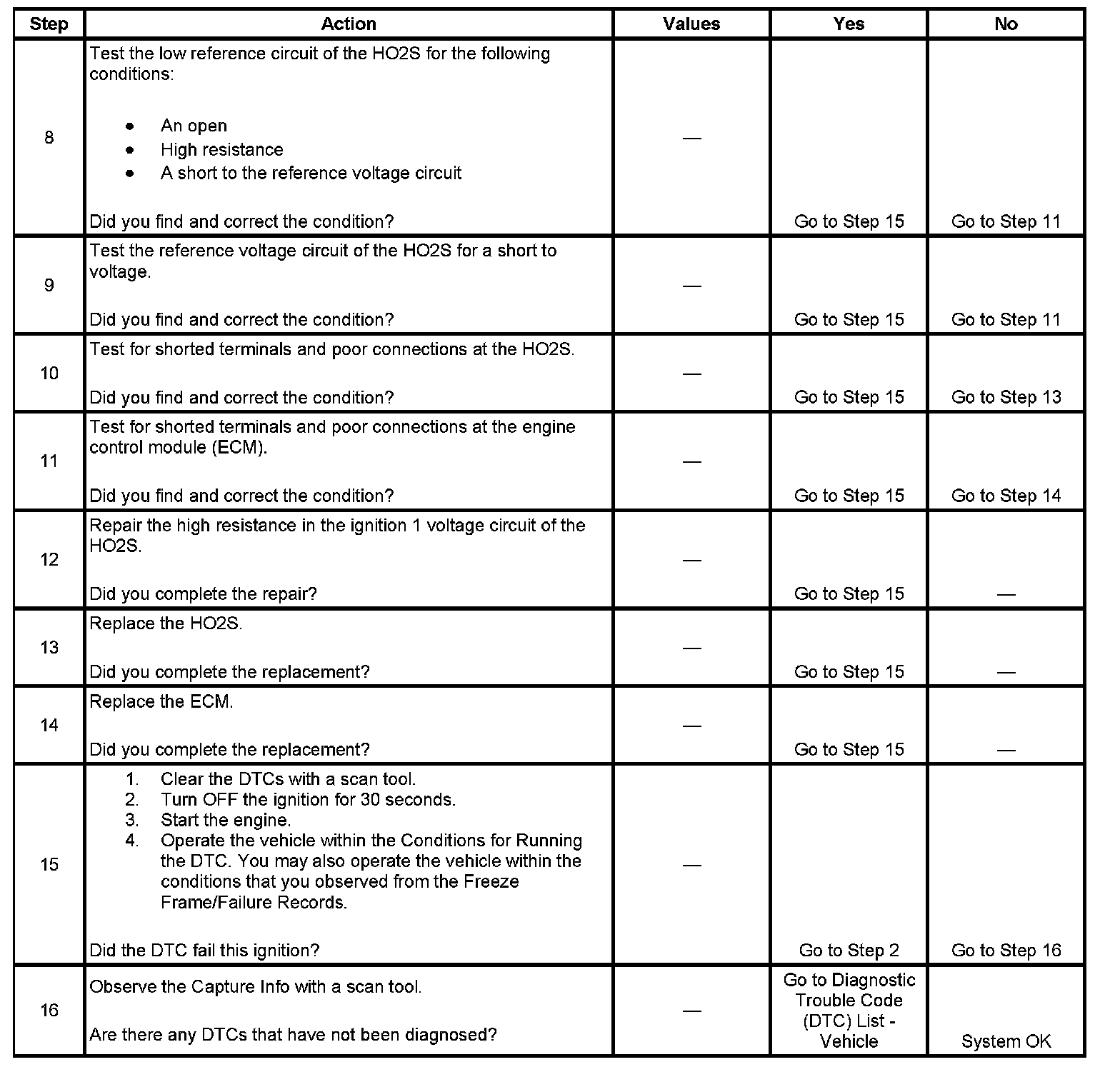 2. This step determines if the condition exists. If there is an HO2S circuit condition, the ECM commands open loop for the applicable sensor.